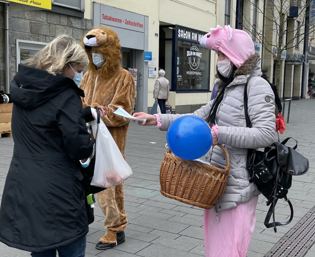 Die Bürgergerpartei GL wünscht alle frohe Ostern! Anlässlich des Osterfests haben wir in der Stadtmitte am Konrad-Adenauer-Platz 777 bunte Ostereier und OP-Masken zum Schutz gegen den Coronavirus verteilt. Der Osterhase (bzw. Osterhasin) und unser BGL Löwe hatten alle Hände und Körbe voll zu tun um für ein wenig Freude zu Ostern zu sorgen. Besonders die Gladbacher Kids haben sich über Hase und Löwe sehr gefreut.